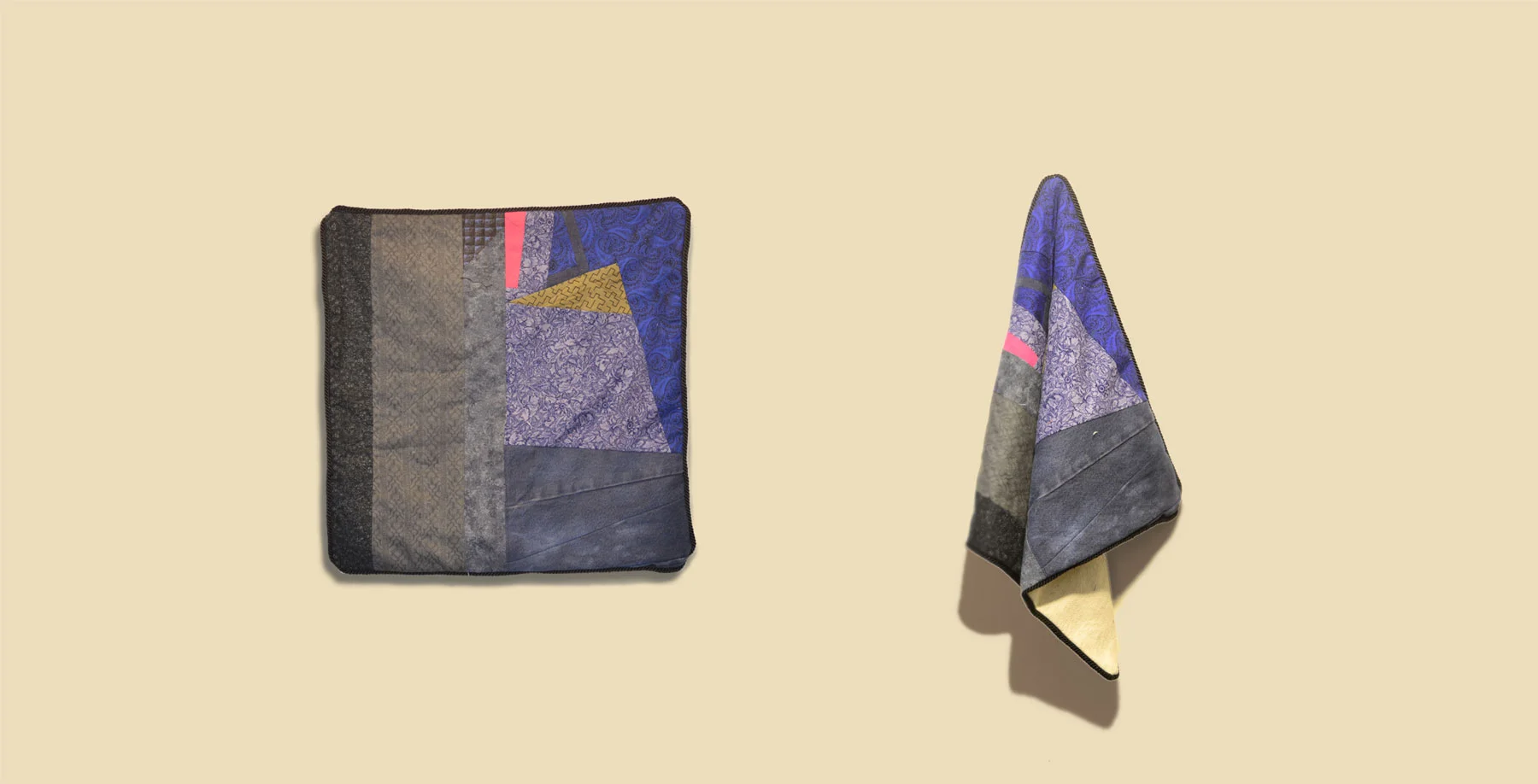 Like the Quilted-Tee, the Mini-Quilt is about renewal and breathing new life into an, otherwise, disposable material. Using quilting techniques on scraps from prior projects, the final product is a "mini" quilt that doubles as a pillowcase with a zipper closure.